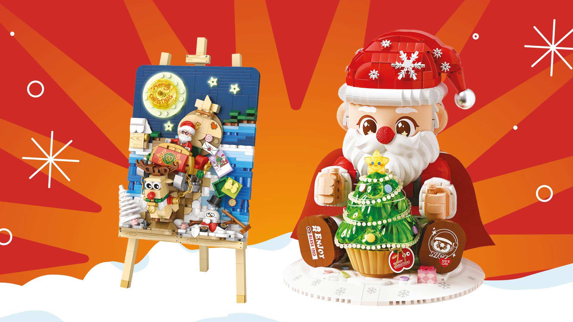Один из новогодних наборов на выбор: LOZ 1282_MK «Новогодняя картина» или LOZ 1283_MK «Рождественская елка на мольберте». Эти наборы – готовый праздничный декор, который превращает обычный стол или полку в уютный зимний уголок.